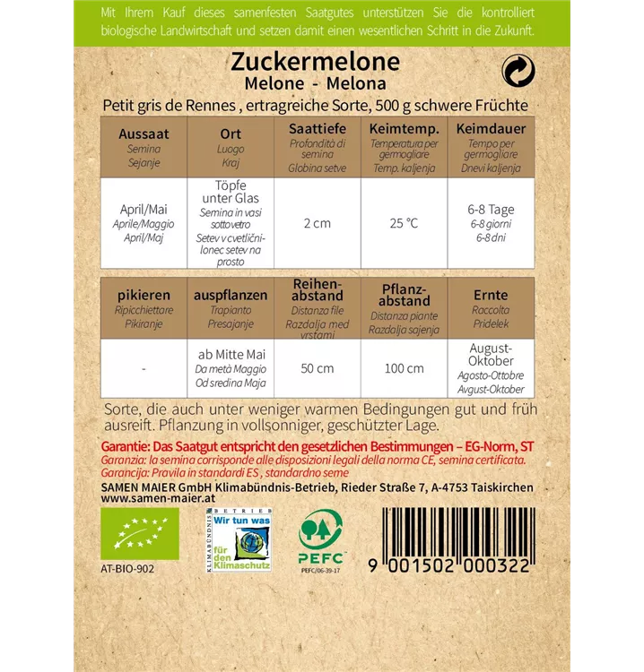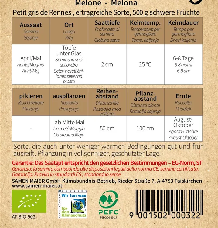 BIO Zuckermelone, Petit gris de Rennes