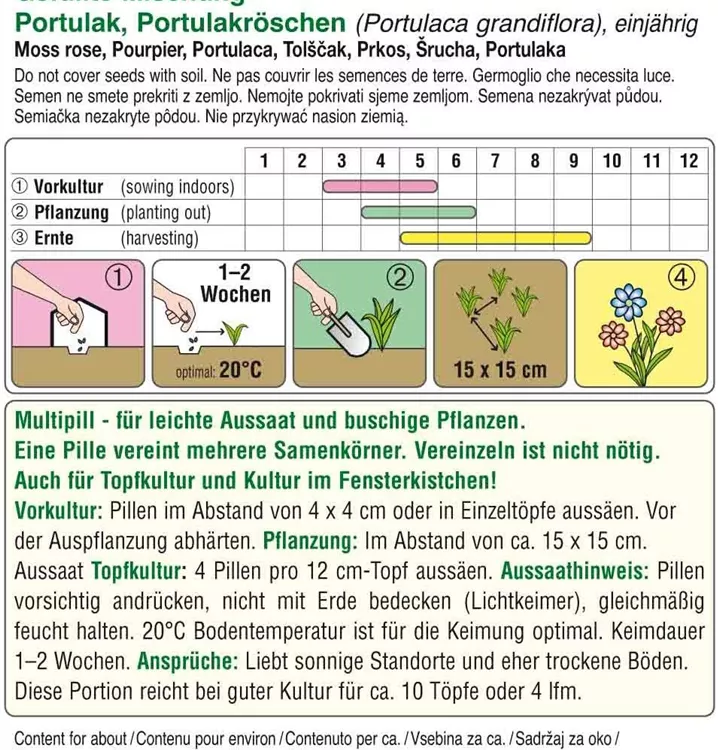 Multipil - für leichte Aussaat und buschige Pflanzen. Eine Pille vereint mehrere Samenkörner. Vereinzeln ist nicht nötig. Auch für Topfkultur und Kultur im Fensterkistchen!