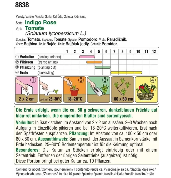 Die Ernte erfolgt, wenn die ca. 50 g schweren, dunkelblauen Früchte auf blaut-rot umfärben. Die eingerollten Blätter sind sortentypisch