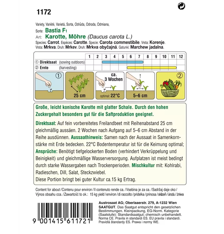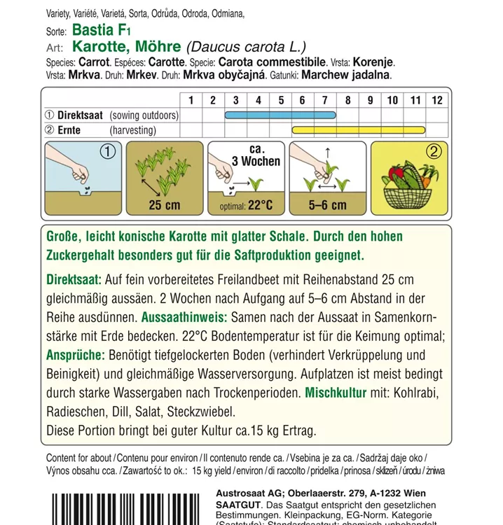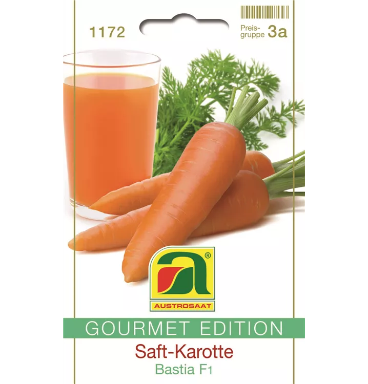 Große, leicht konische Karotte mit glatter Schale. Durch den hohen Zuckergehalt besonders gut für die Saftproduktion geeignet.