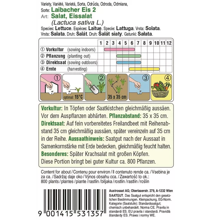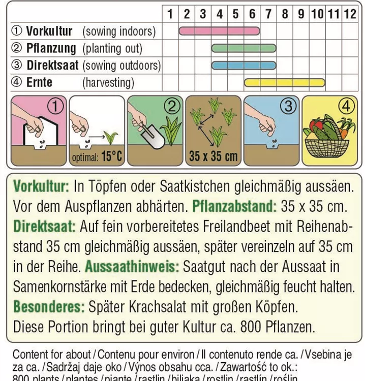 Ein später Eissalat mit großen Köpfen und rotbraunen Rändern. Er wird auch "Krachsalat" oder "Bummerlsalat" genannt und liebt humose Böden.
