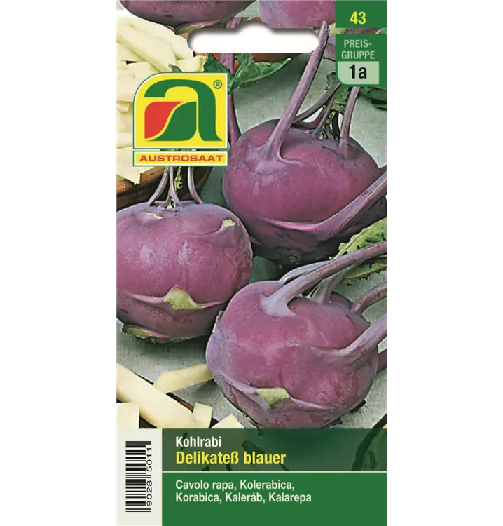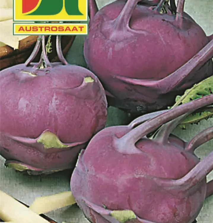 Ein Kohlrabi mit mittelgroßen, zarten Knollen in blauviolett. Er ist sowohl für Früh- als auch Spätkultur geeignet. Kohlrabi liebt mittlere bis schwere Böden und regelmäßige Wasserversorgung.