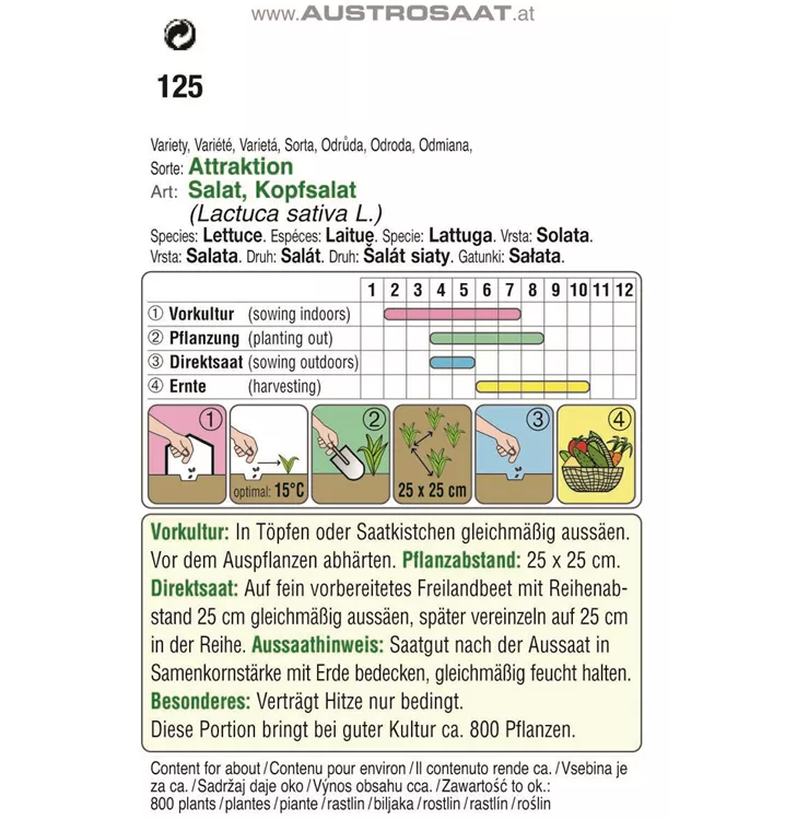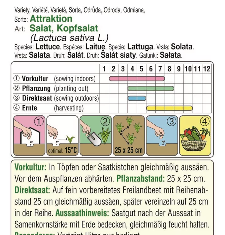Ein bewährter, früher Salat für kühle Lagen. Hitze verträgt er nur bedingt. Er liebt humose Böden.