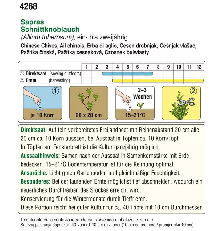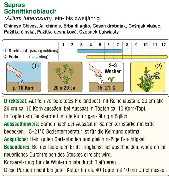 Gehört zu den Lauchgewächsen. Sein Geschmack ist milder als der von Knoblauch, aber kräftiger und intensiver als der von Schnittlauch.Die dekorativen weißen Blüten duften süßlich.