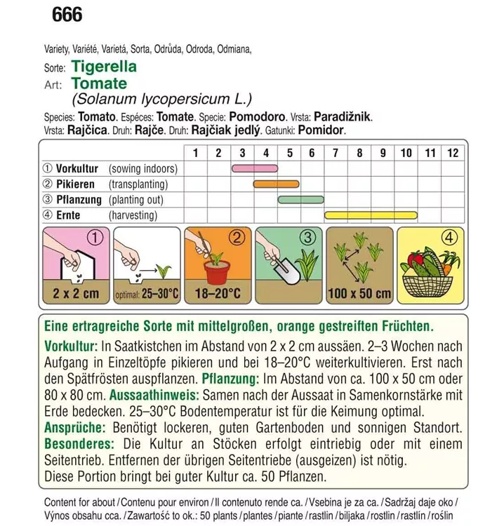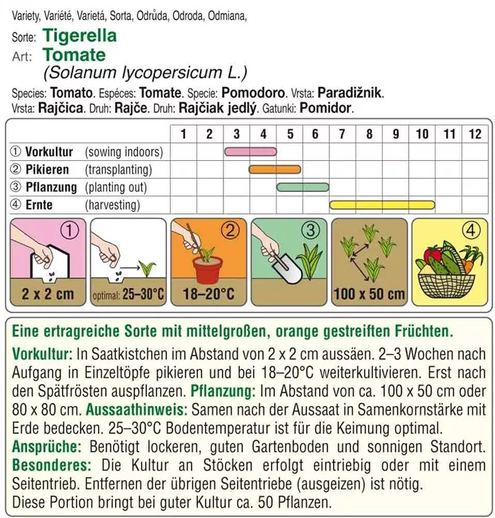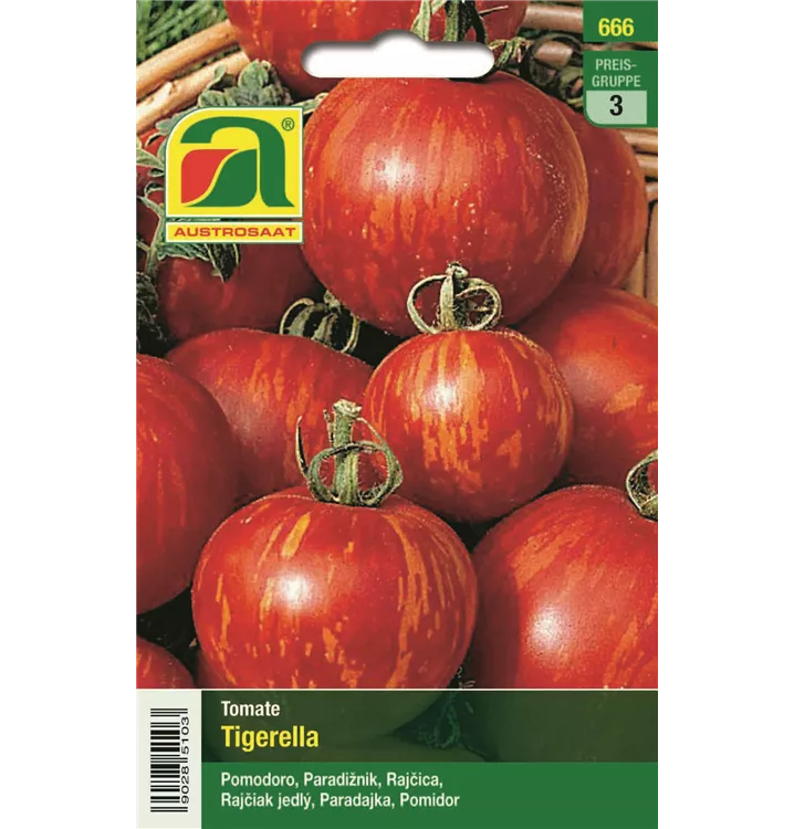 Eine ertragreiche Sorte mit mittelgroßen, orange gestreiften Früchten.