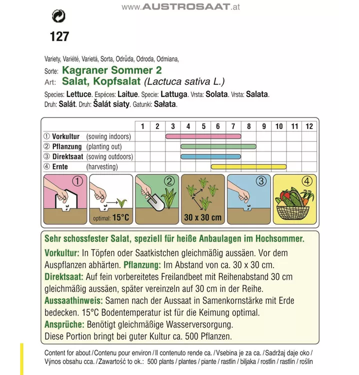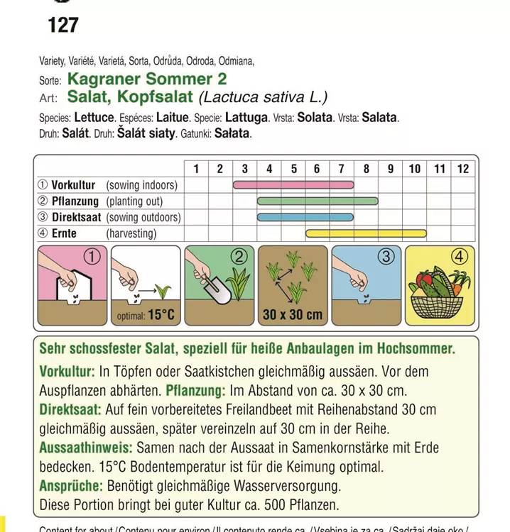 Sehr schossfester Salat, speziell für heiße Anbaulagen im Hochsommer.