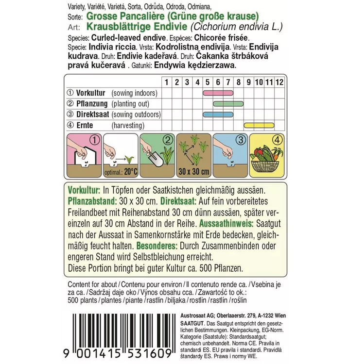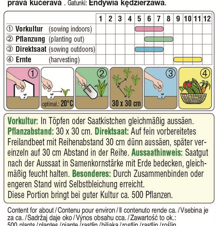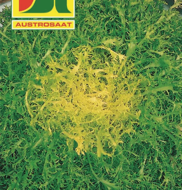 Eine sehr fein gekrauste Winterendivie (grüne große krause - Frisée). Endivie ist ein schmackhaftes Herbstgemüse. Durch Zusammenbinden oder engeren Stand wird Selbstbleichung erreicht.