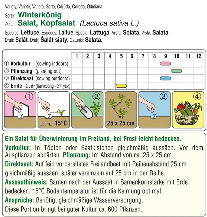 Ein Salat für überwinterung im Freiland, bei Frost leicht bedecken.