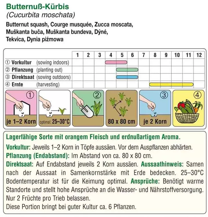 Lagerfähige Sorte mit orangem Fleisch und erdnußartigem Aroma