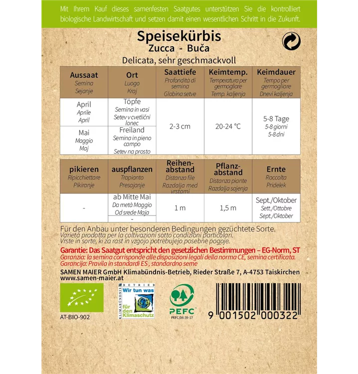BIO Speisekürbis, Bush Delicata