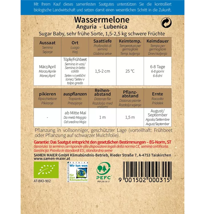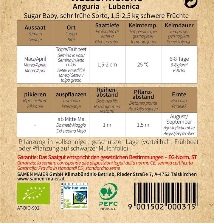 Pflanzung in vollsonniger, geschützter Lage (vorteilhaft: Frühbeet oder Pflanzung auf schwarzer Mulchfolie).
