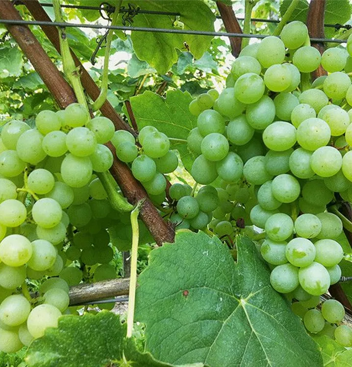 Kernlose, hellgelb-grünliche Beeren in grossen, langen Trauben. Kernlose Trauben sind vor allem bei Kindern sehr beliebt. LAKEMONT erweitert das ROBUSTAREBEN® Sortiment mit feinfruchtig-süssen, mittelgrossen, runden, dünnschaligen Beeren, ihrer Reife ab Mitte September und relativ starkem Wuchs. Robustes Laub. Gute Frosthärte des Holzes. Geeignet für Pflanzung im Garten, Spalier an der Pergola und grosse Töpfe (mind. 40 l).