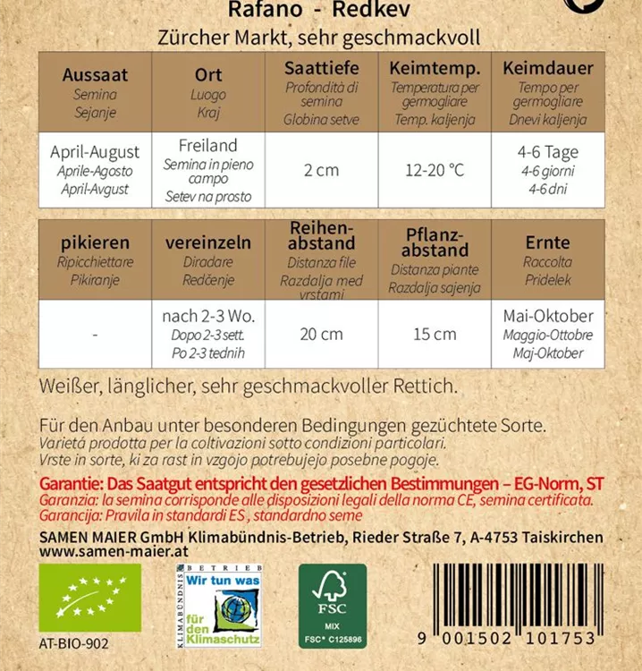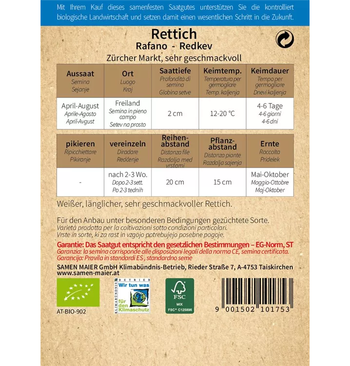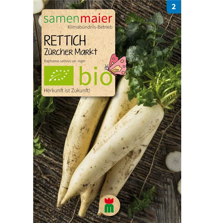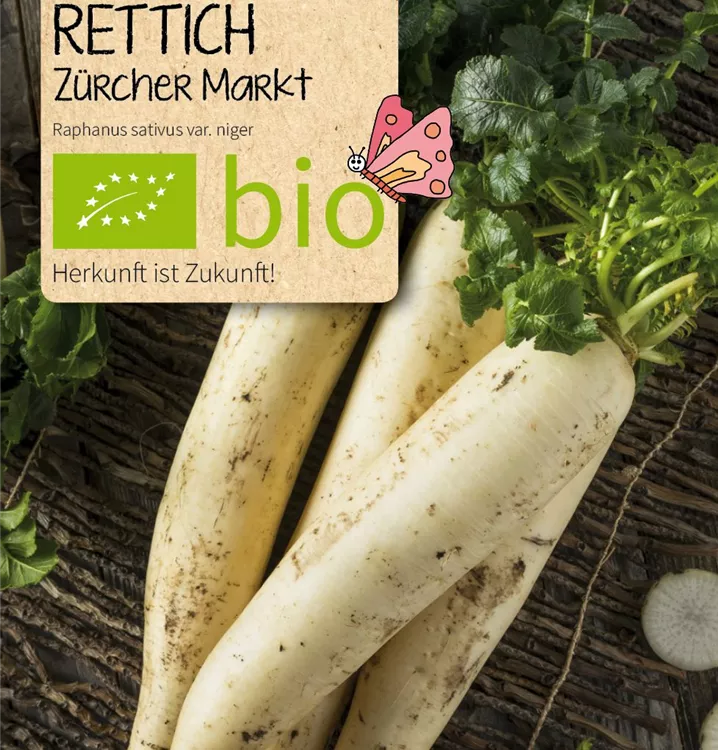 Weißer, länglicher, sehr geschmackvoller Rettich.
