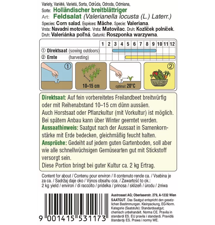 Feldsalat Holländischer breitblätttriger ist starkwüchsig, hat breite Blätter und ist ideal für den Herbstanbau geeignet. Er gedeiht auf jedem guten Gartenboden.