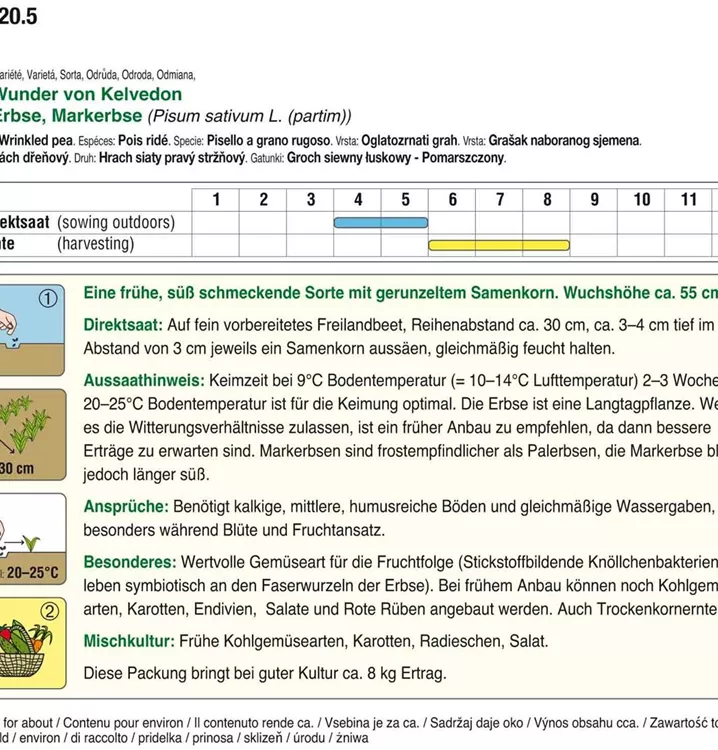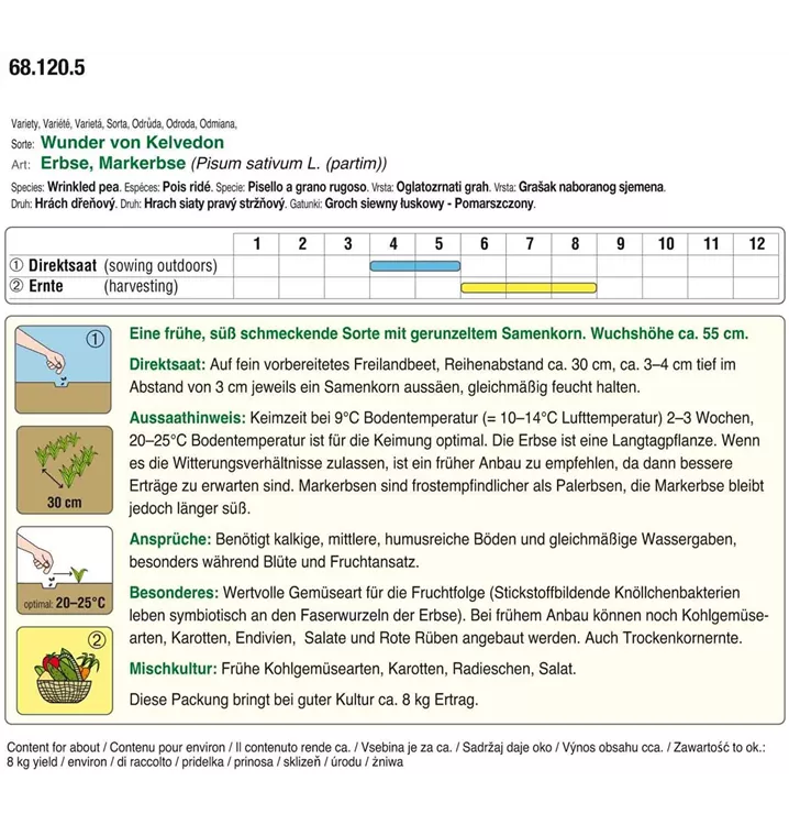 Eine frühe, süß schmeckende Sorte mit gerunzeltem Samenkorn.