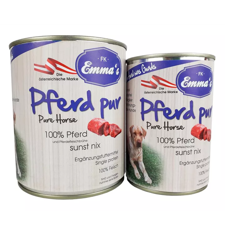 Tua deim Hund was Guads hochwertige Feuchtnahrung. Pferd Pur - sunst nix!