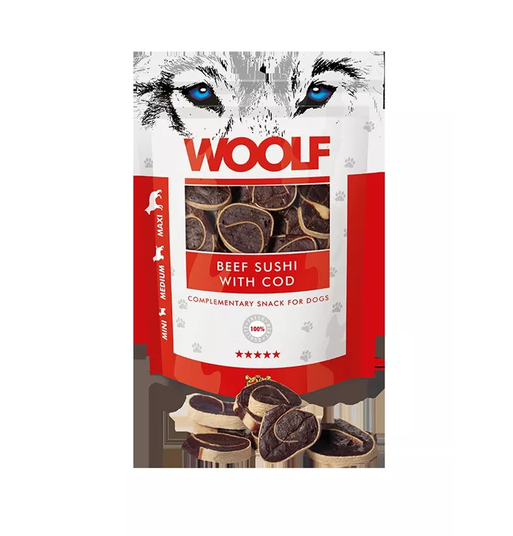 Die leckeren, natürlichen Hundeleckerlis mit Rindfleisch und Dorsch (Kabeljau).