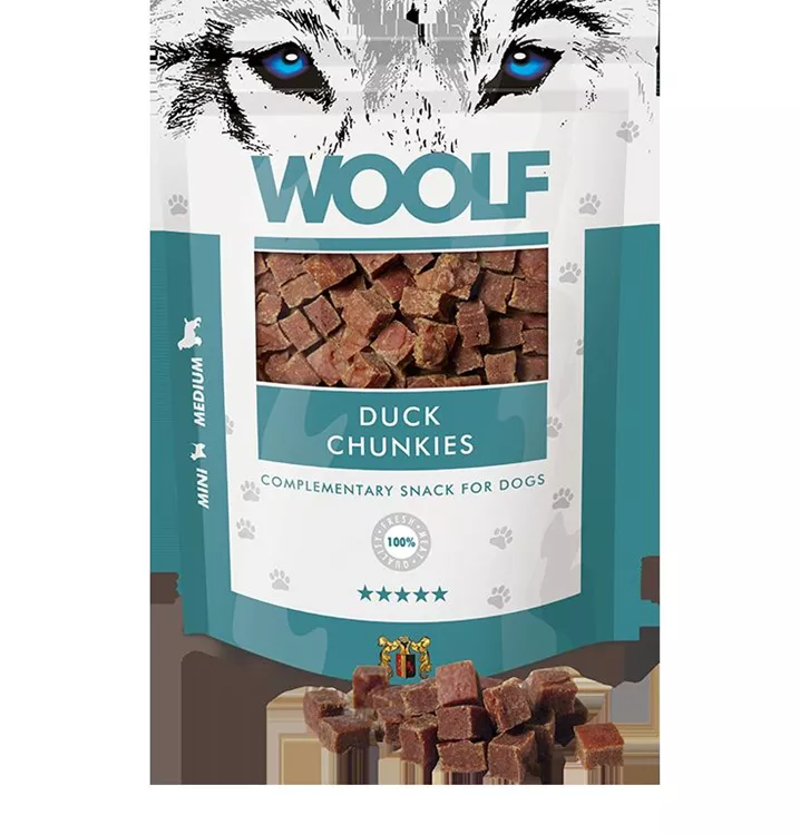 Die Snacks bestehen zu 100% aus hochwertigen Proteinquellen, um höchste Qualität und beste Nährstoffaufnahme zu gewährleisten. Der Woolf Snack wird nach dem Kochen ohne chemische Zusätze, Konservierungsstoffe oder Farbstoffe verpackt. Um die Konservierung sicherzustellen, wird ein Sauerstoffabsorber in den Beutels gepackt.