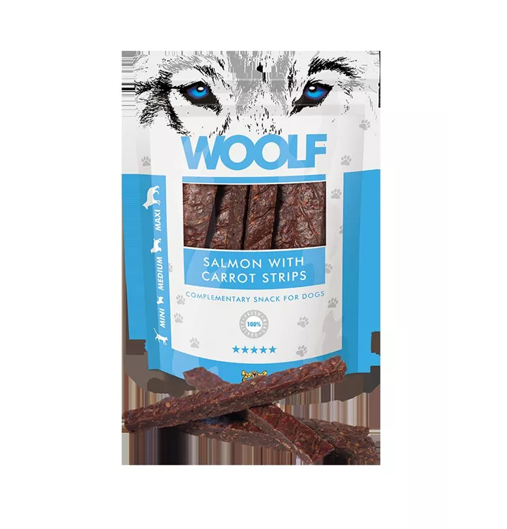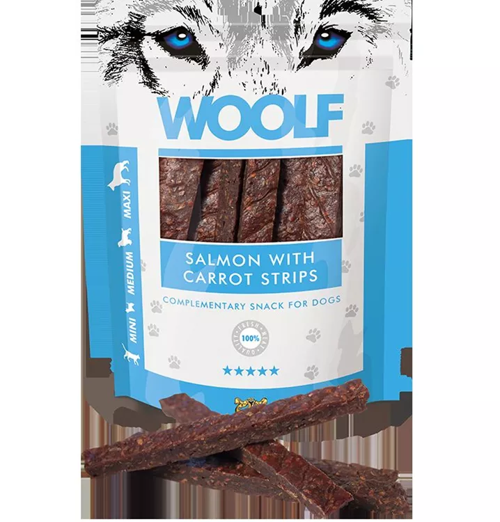 Die leckeren, natürlichen Hundeleckerlis mit Lachs und Karotte.