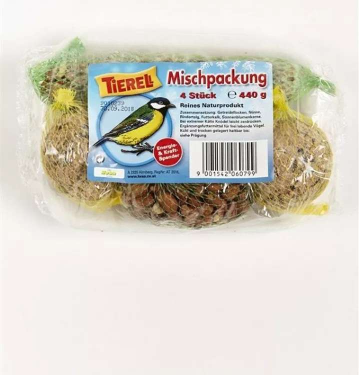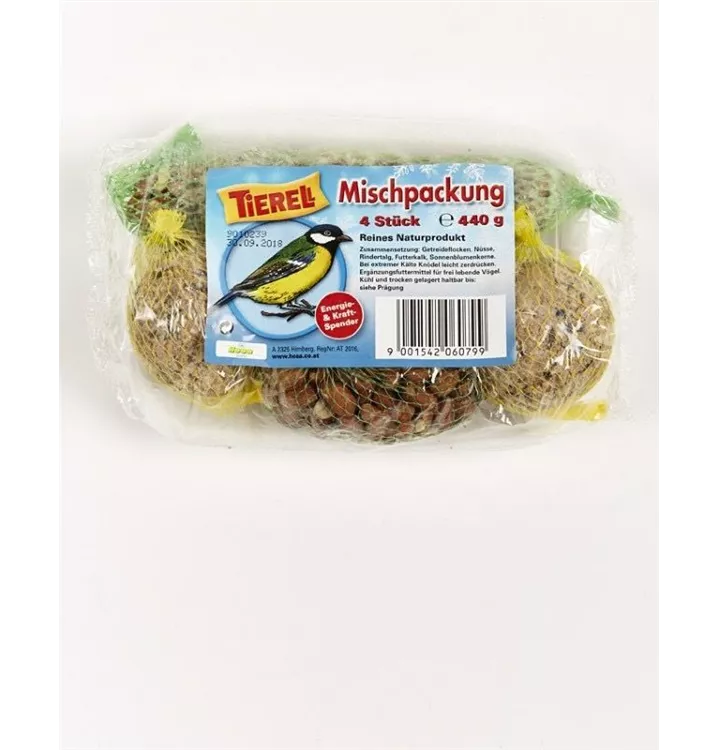 Die Mischtasse beinhaltet 2 Stk. Meisenknödel, 1 Nussbeutel und 1 Nuss- Stange