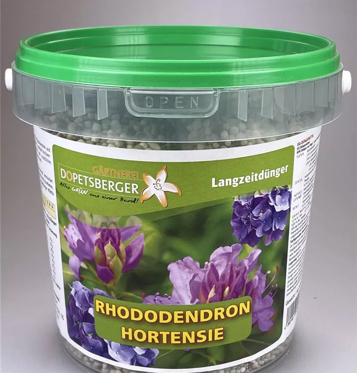 Dieser Dünger ist für Rhododendren und Hortensien geeignet. Er enthält hochwertige