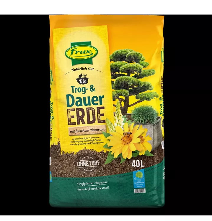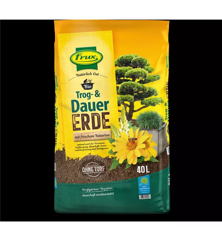 Die frux Spezialerde für Trog- & Dauerbepflanzung Durch den hohen Anteil an mineralischen Stabilisatoren ideal für Dauerbepflanzungen, Innenraumbegrünungen und die Bepflanzung von Großgefäßen mit Pflanzeinsatz und Bewässerungssystem geeignet, bei denen es sehr darauf ankommt, dass die Erde langfristig nicht zusammensackt und verdichtet. Auch für salzempfindliche Pflanzen geeignet und sehr gut als strukturstabiler Unterbau in Hochbeeten zu verwenden.
