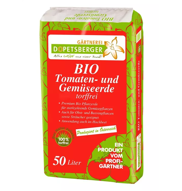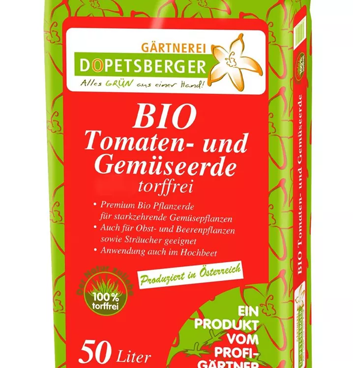 Mit seiner jahrzehntelangen Erfahrung hat Dopetsberger eine eigene BIO Tomaten- & Gemüseerde entwickelt. Die einzelnen Nährstoffe sind so aufeinander abgestimmt, dass die ideale Versorgung von Tomaten und Gemüse gewährleistet ist.