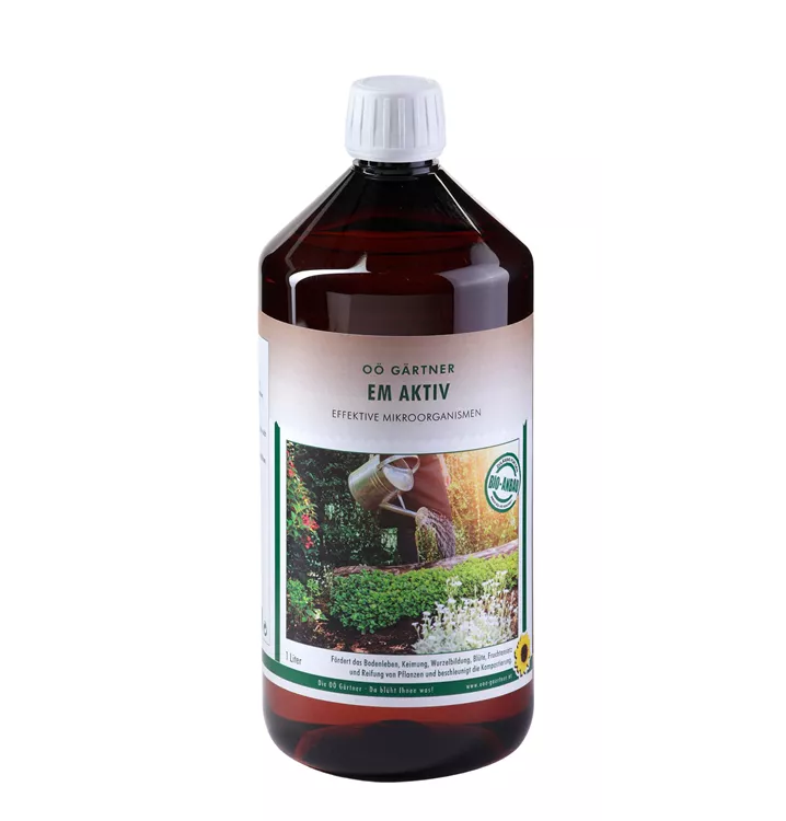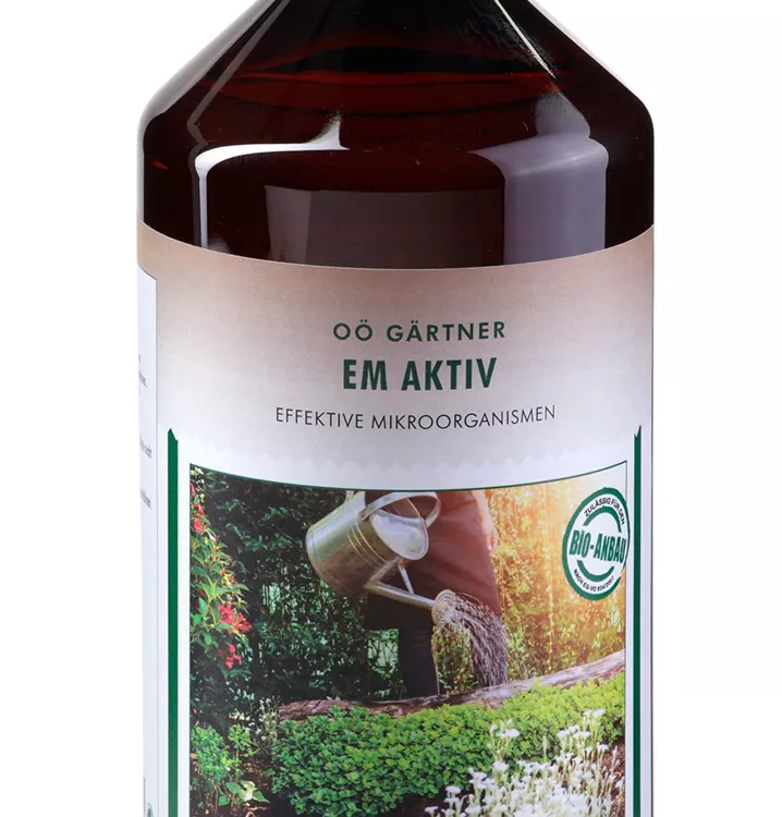 Effektive Mikroorganismen: EM Aktiv (EMa) beinhaltet eine Mischung aus Milchsäurebakterien (Lactobacillus casei, Lactobacillus plantarum), Photosynthesebakterien (Rhodopseudomonas palustris) und Hefen (Saccharomyces cerevisiae).