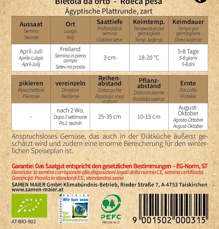BIO Rote Rüben, Ägyptische Plattrunde