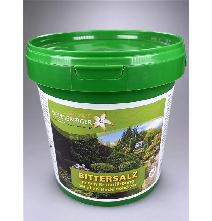 Dopetsberger-Bittersalz enthält extra viel Magnesium, das die Braunfärbung der Nadeln verhindert. Es wird