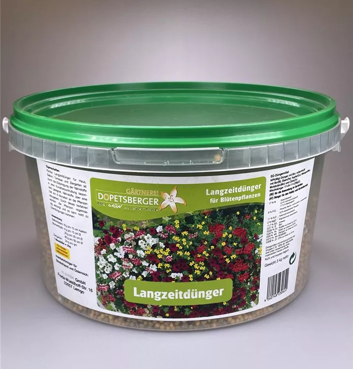 Dopetsberger Langzeitdünger für Haus, Balkon, Terrasse und Ziergarten ist durch die Einbringung der Nährstoffe in eine Kunstharzumhüllung besonders geeignet, Nährstoffe über eine