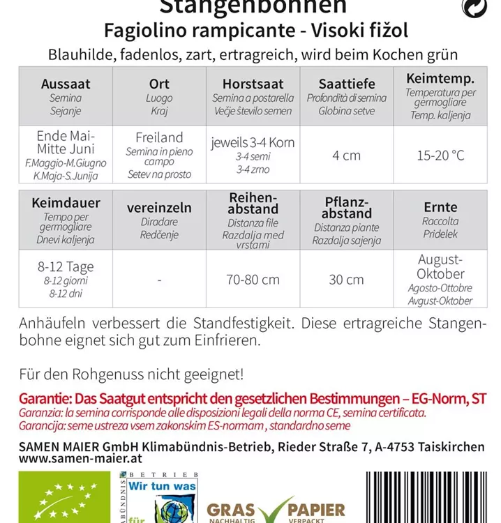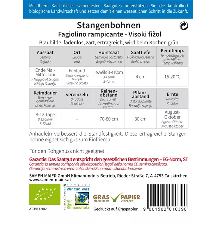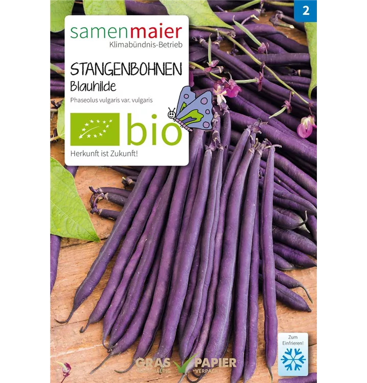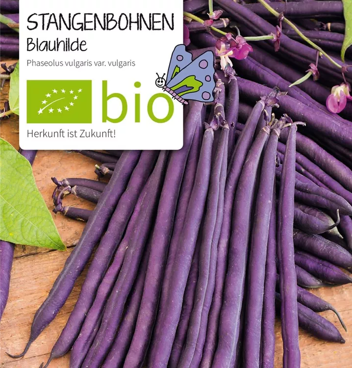 BIO Blauhilde, fadenlose Stangenbohne
