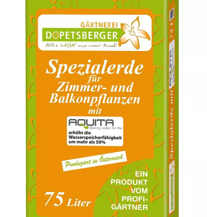 Mit seiner jahrzehntelangen Erfahrung hat Dopetsberger eine eigene Sommerblumenerde entwickelt die dank der Aquita Wasserspeichertechnik mehr als 50 % Wasserspeicherfähigkeit aufweist. Die einzelnen Nährstoffe sind so aufeinander abgestimmt, dass die ideale Versorgung von Sommerblumen gewährleistet ist. Unter anderem ist auch ein Langzeitdünger und ein Eisendünger in der Dopetsberger-Spezialerde enthalten