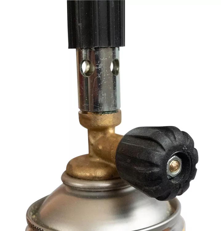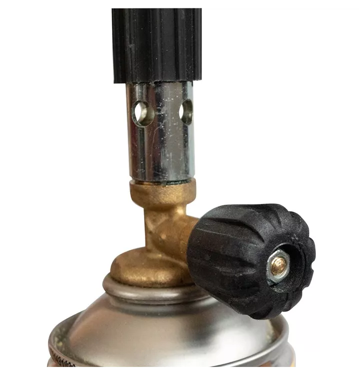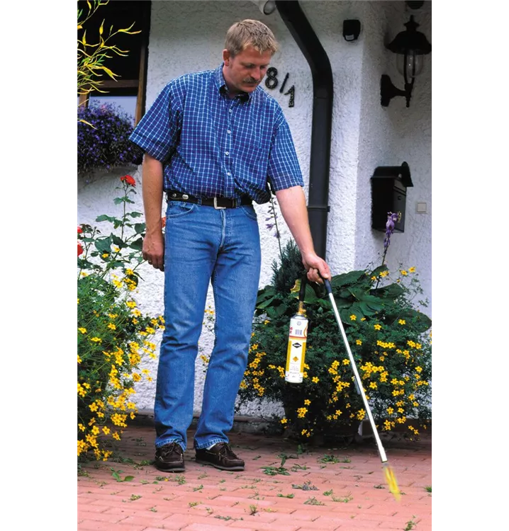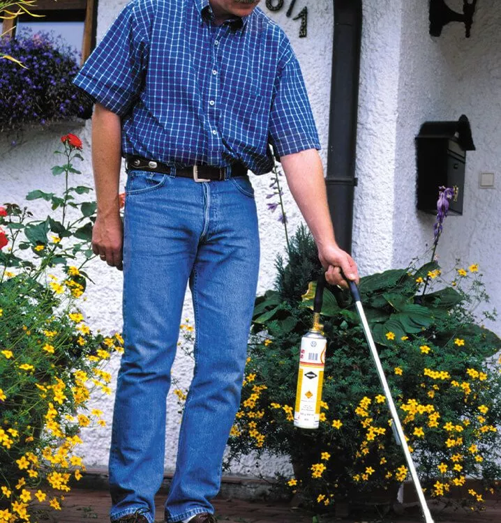 Thermische Unkrautbekämpfung leicht gemacht. Mit Flüssiggasdose 600 ml, ausreichend für ca. 1,5 Stunden Betrieb. Mit Piezo-Zündung und stufenlosem Regulierventil.