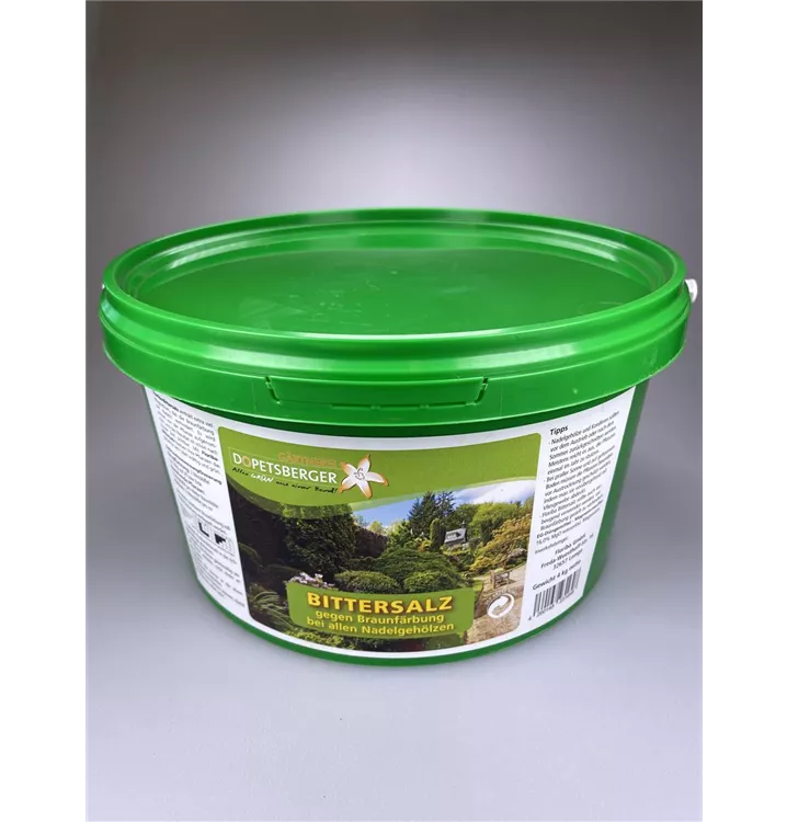 Dopetsberger-Bittersalz enthält extra viel Magnesium, das die Braunfärbung der Nadeln verhindert. Es wird