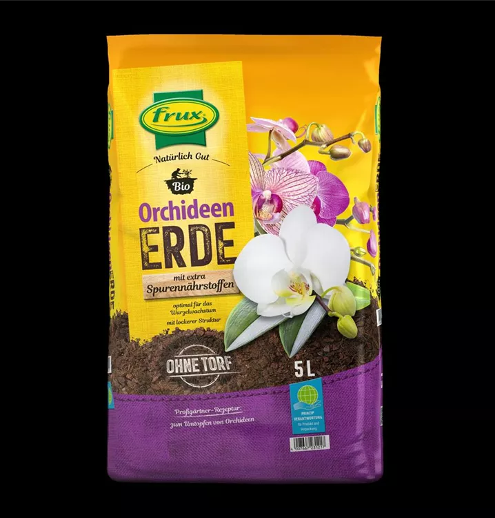 Die frux Orchideenerde ist ein gebrauchsfertiges Pflanzsubstrat aus dem bewährten frux Erdensortiment zum Topfen aller Orchideenarten. Die für diese Pflanzen wichtige Luft- und Wasserführung wird durch die Zugabe von Pinienrinde und die hervorragende Struktur der Erde gesichert. frux Orchideenerde enthält speziell auf Orchideen abgestimmte Dünger. Der optimale pH-Wert sichert eine gute Pflanzenentwicklung.