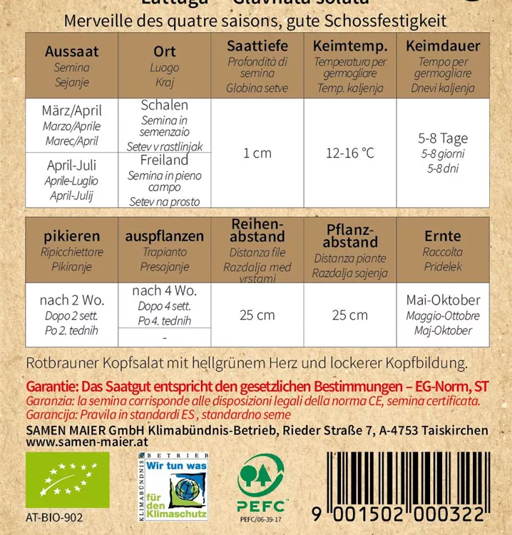 BIO Kopfsalat, Merveille des quatre
