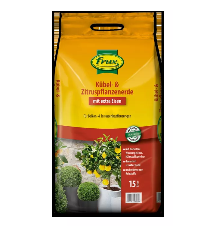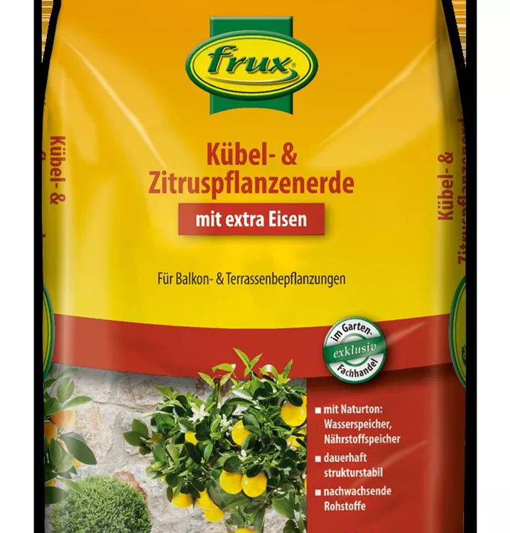 Mit der frux Kübelpflanzenerde steht dem Verbraucher eine hochwertige Einheitserde zur Verfügung, die sich schon jahrzehntelang im internationalen Erwerbsgartenbau bewährt hat. frux Kübelpflanzenerde ist ein gebrauchsfertiges Kultursubstrat zum Ein- und Umtopfen all Ihrer Kübel- und Zitruspflanzen.
