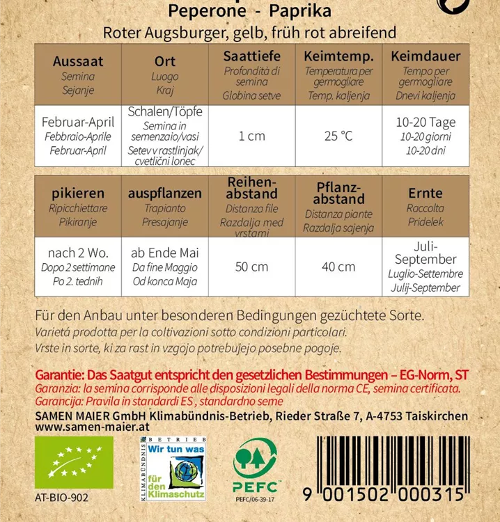 BIO Paprika, Roter Augsburger