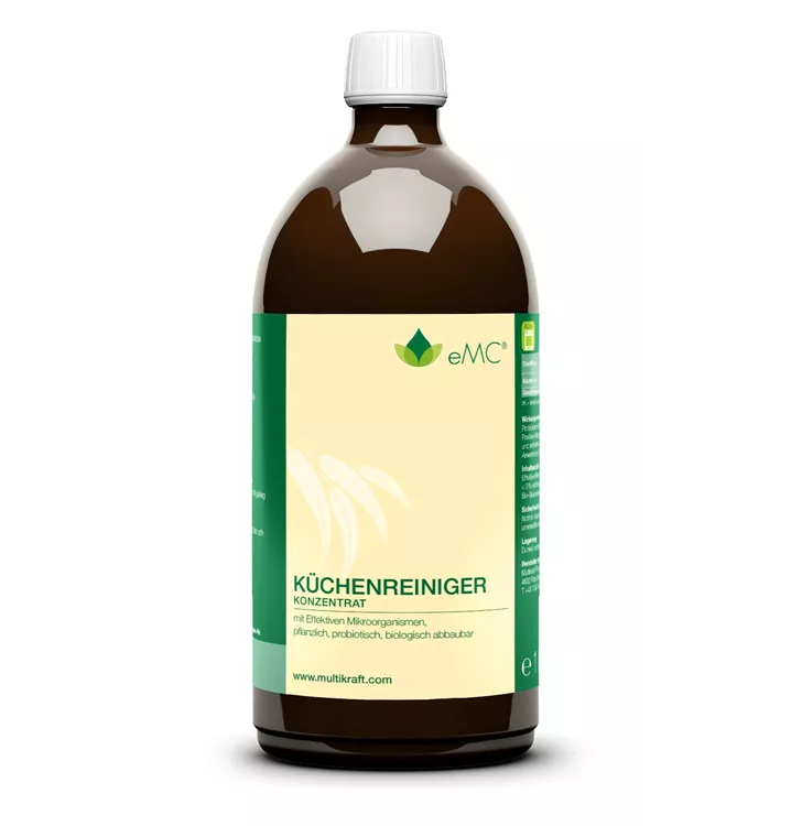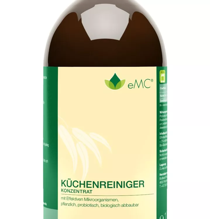 Der eMC Küchenreiniger kann im gesamten Bereich der Küche und Großküche eingesetzt werden. Der Einsatzbereich ist besonders vielseitig: Als Sprühlösung kann er auf Herd und im Backrohr genauso wie im Kühlschrank verwendet werden, im Geschirrspüler und bei Abwasch ersetzt er das herkömmliche Geschirrspülmittel. Dank natürlicher Inhaltsstoffe sind alle eMC Reiniger besonders hautschonend und auch für Allergiker geeignet. Der eMC Küchenreiniger wurde bei Untersuchungen im Vergleich zu chemischen Reinigern und Desinfektionsmitteln getestet und weist deutliche Vorteile in der Bescherrschung mikrobiologischer Verunreinigungen auf und ist aus lebensmittelhygienischer Sicht vorteilhaft anzuwenden. Alle eMC Reiniger sind Konzentrate mit besonders hoher Verdünnungsrate.