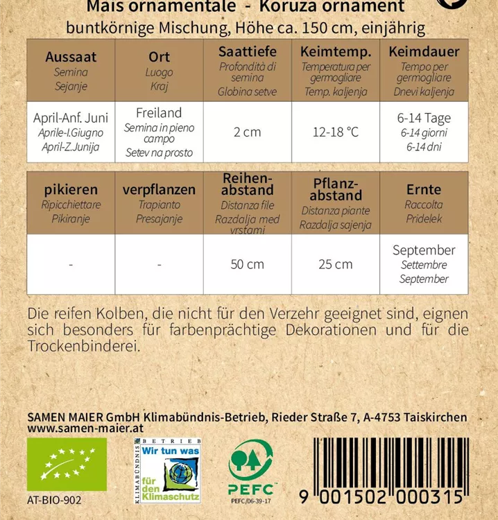 BIO Ziermais, buntkörnige Mg.