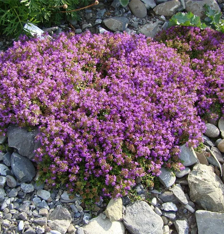 Der Echte Thymian (Thymus vulgaris) ist eine Kräuterpflanze mit einem aromatischen, würzigen Geschmack. Für das optimale Wachstum des Echten Thymians werden ein sonniger Standort und durchlässiger, nährstoffreicher Boden benötigt. Zu viel Dünger schadet dem Kräuteraroma! In Pflanzgefäßen sind Kräuter gut versorgt, wenn sie einmal im Frühjahr Kräuterdünger bekommen. Im Garten ausgepflanzt, genügt eine Kompostgabe zum Saisonstart.