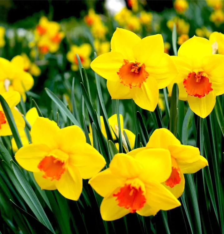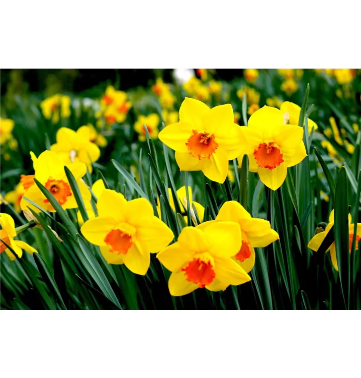 Die Narzisse (Narcissus) bringt ansehnliche, weiße, gelbe, orangefarbene, angenehm duftende Blüten im April hervor. Sie bevorzugt durchlässigen, lockeren, nährstoffreichen Boden in sonniger windgeschützter Lage. Die aufrechte Pflanze erreicht gewöhnlich eine Höhe von 20 - 40 cm und wird bis zu 15 cm breit.
