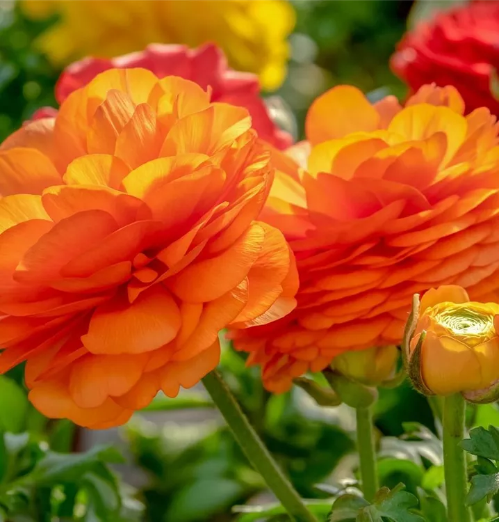 Die Ranunkel (Ranunculus asiaticus) ist eine beliebte, pflegeleichte Pflanze für den Balkon, die während der gesamten Saison unzählige weiße, gelbe, orangefarbene, rote oder rosafarbene Blüten bildet. Die mittelgrünen Blätter sind gefingert. Ein sonniger Standort und ein durchlässiges Substrat werden bevorzugt. Eine frostfreie Überwinterung bei 5 bis 10°C ist erforderlich.