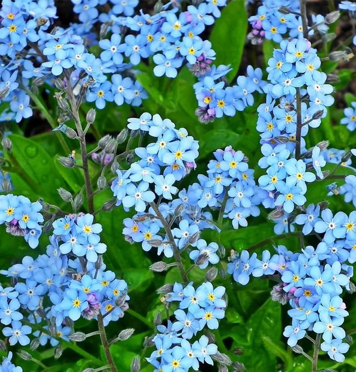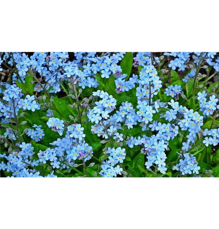 Das Wald-Vergissmeinnicht (Myosotis sylvatica) ist eine beliebte Pflanze für den Balkon, die während der gesamten Saison unzählige blaue, weiße oder rosafarbene Blüten bildet. Ein sonniger Standort und ein durchlässiges Substrat werden bevorzugt.
