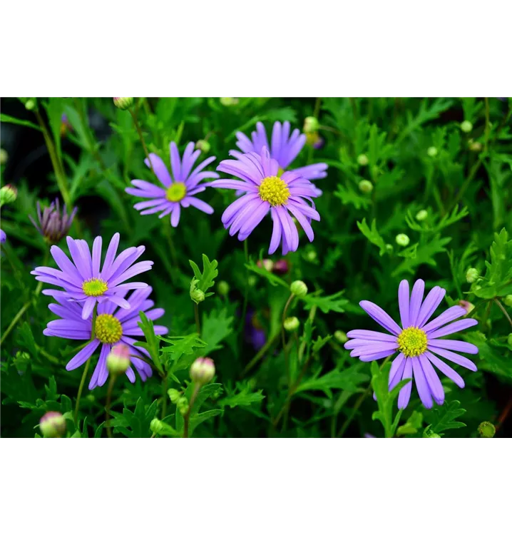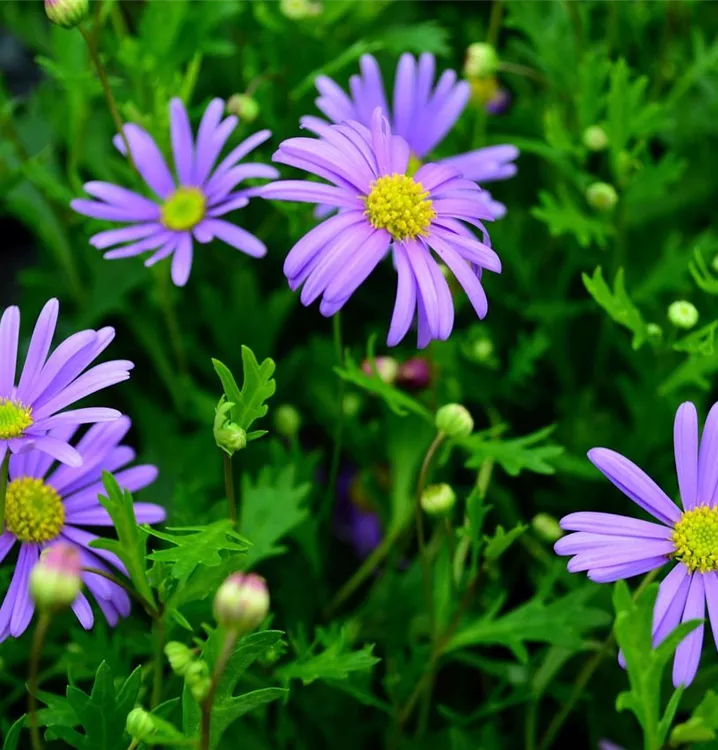 Das Blaue Gänseblümchen (Brachyscome) ist eine beliebte Pflanze für den Balkon, die während der gesamten Saison unzählige blaue, gelbe, rosafarbene oder weiße Blüten bildet. Ein sonniger Standort und ein durchlässiges Substrat werden bevorzugt. Regelmäßiges Gießen im Sommer ist besonders wichtig. Morgens oder abends ist der beste Zeitpunkt dafür. Außerdem sollte langsam gegossen werden und nach Möglichkeit nicht über Blüten und Blätter.