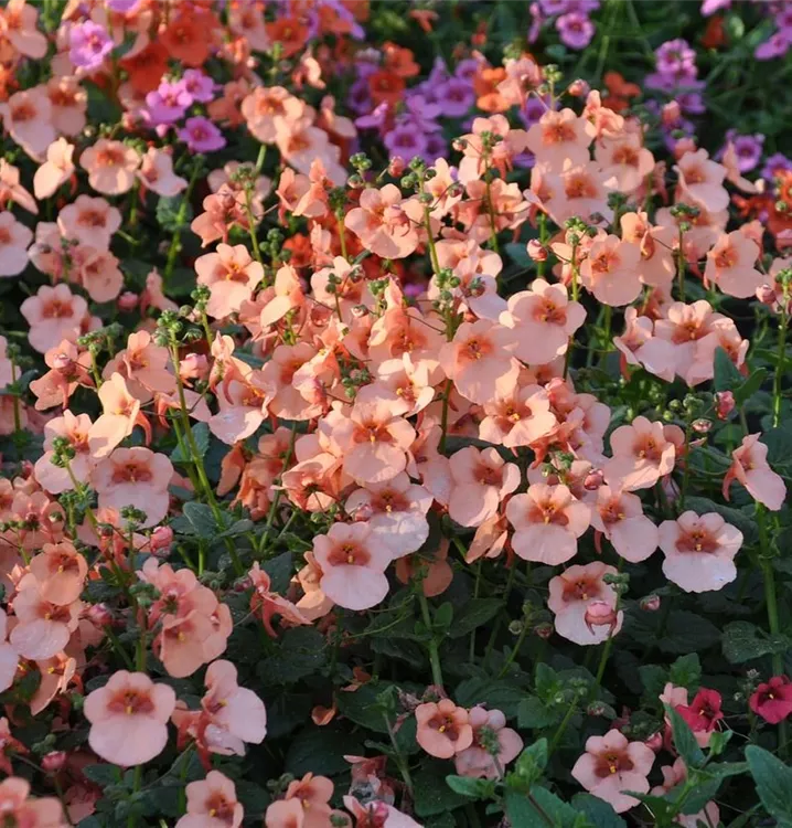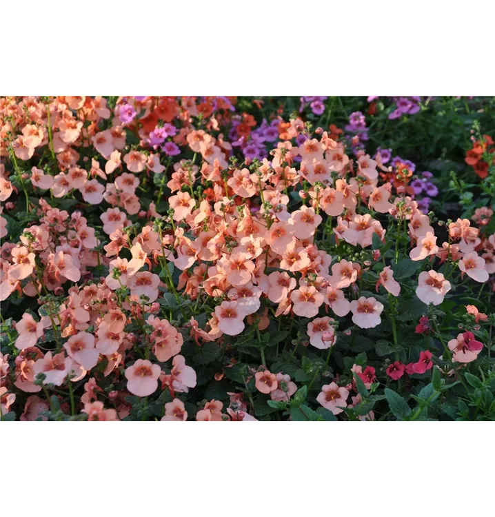 Der Elfensporn (Diascia) ist eine beliebte Pflanze für den Balkon, die während der gesamten Saison unzählige weiße, rosafarbene oder rote Blüten bildet. Ein sonniger bis halbschattiger Standort und ein durchlässiges Substrat werden bevorzugt. Regelmäßig gießen und die Erde zwischenzeitlich abtrocknen lassen.