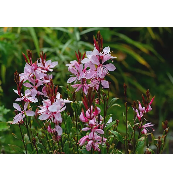 Die Garten-Prachtkerze (Gaura lindheimeri) ist eine aufrechte, lockere Staude, die von Juli bis Oktober weiße, in Rispen angeordnete Blüten bildet. Ihre lanzettlichen Blätter sind mittelgrün. An einem sonnigen Standort mit durchlässigem, sandigem Boden erreicht sie gewöhnlich eine Höhe von ca. 80 cm und wird ca. 40 cm breit. Die Garten-Prachtkerze ist an geschützten Standorten gut frostverträglich.