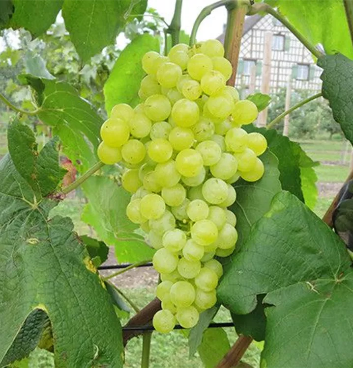Die weisse, kernlose Traube mit dem besonderen Geschmack! Lockere Trauben mit feinschaligen, mittelgrossen, weissgelben Beeren. Würzig, feines Himbeeraroma. Sehr frühe Reife ab Anfang September.