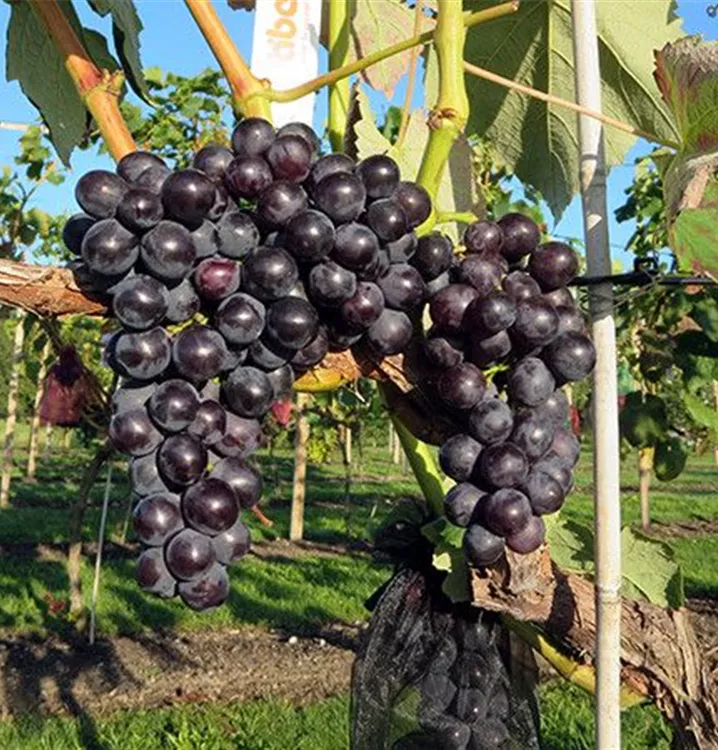 Sehr grosse, lockere Trauben mit grossen blauen Beeren und Supergeschmack. Süss und saftig. Hoher Ertrag. Reife ab Mitte September. Die Blätter sind gross und zeigen sehr schöne Herbst­färbung. Üppiger Wuchs, die ­ideale Pergola-Rebe.